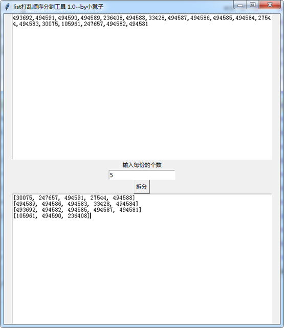 list打乱顺序分割工具官方版是一款设计美观、无需学习、易上手的list数据分割工具,list打乱顺序分割工具官方版页面简洁友好,体积小巧,是用用python语言制作的,没有什么太多的功能,只是单纯的方便进行list数据的分割。