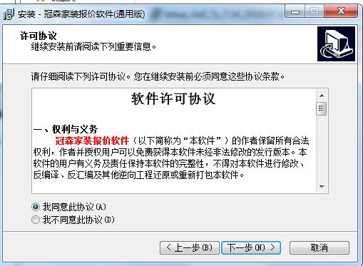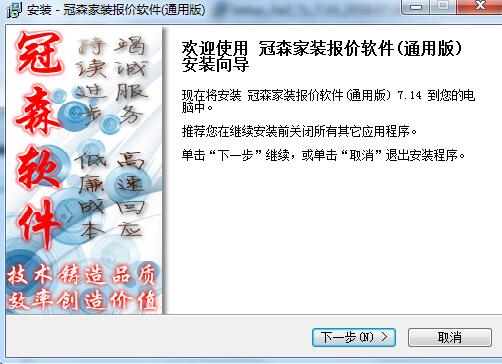 1、解压下载的软件,找到安装文件,打开进入安装冠森家装报价软件界面,点击下一步