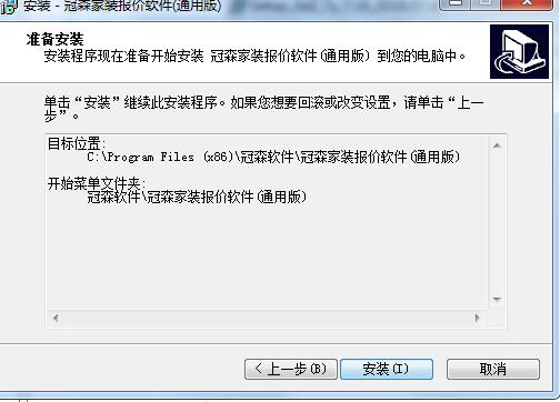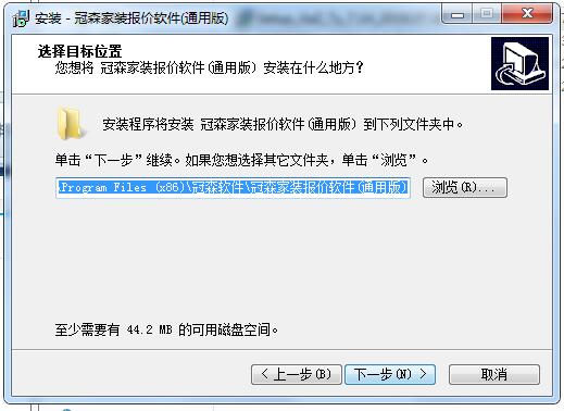 3、选择目标位置,默认“C:\Program Files (x86)\冠森软件\冠森家装报价软件(通用版)”,点浏览修改