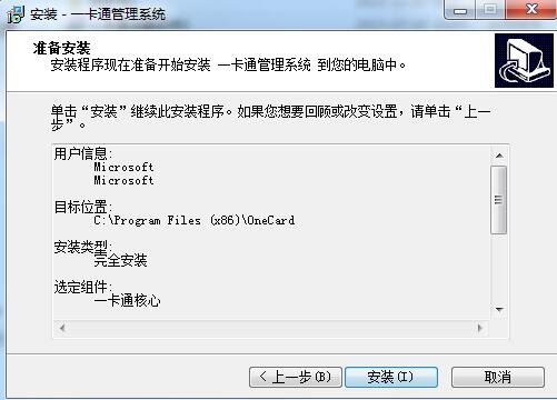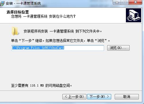 4、选择目标位置,默认的是“C:Program Files (x86)OneCard”,可以点浏览修改