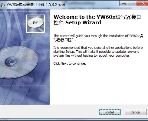 1、双击yw60xocxSetup.exe文件,进入安装界面,点击install开始安装
