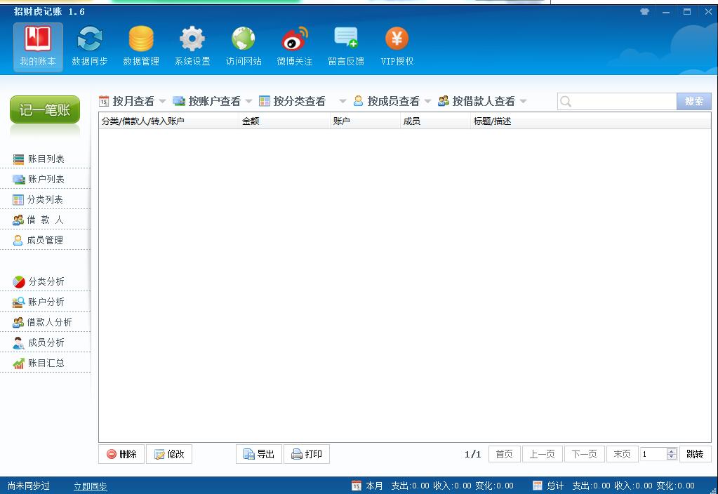 招财虎记账软件能够同时记录收支、转账、借款和还款。独有的显示方式可以在同一列表界面显示任意类型的账目数据,做到一个软件,全部搞定。