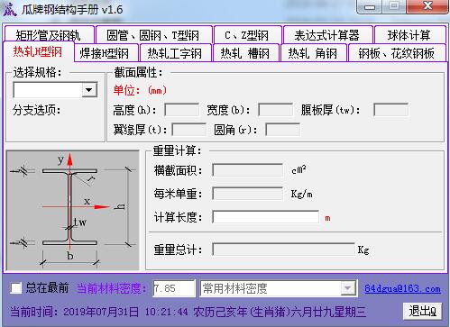 瓜牌钢结构手册官方版是一款体积十分小巧且实用的钢材重量计算软件,瓜牌钢结构手册官方版内置强大的功能,支持钢材种类非常齐全,可以帮组用户进行矩形管,钢轨,圆管,圆钢,T、C、Z型钢,热轧H型钢、工字钢、槽钢、角钢,焊接H型钢,钢板,花纹钢板以及球体的计算。