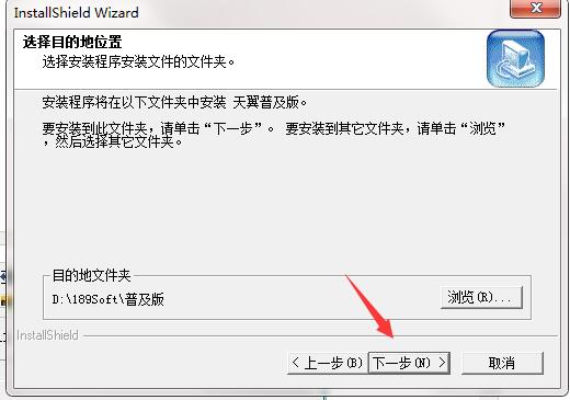 3、选择目的地位置,默认的是D盘,可以点击浏览修改