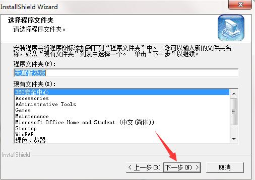 5、选择程序文件夹