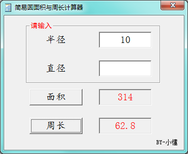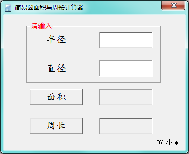 这是一个小型的计算器,圆面积与周长计算器比较简单,适合孩子们学习用,运行软件后输入半径、直径计算圆面积与周长,检测孩子作业,很多让求圆面积与周长的,虽然是家长,这也太麻烦了,因此就搞来这个计算器了。