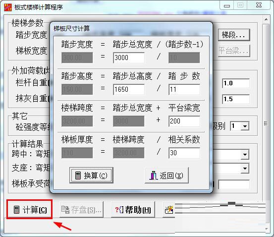 4、支持快速计算出板式楼梯配筋值