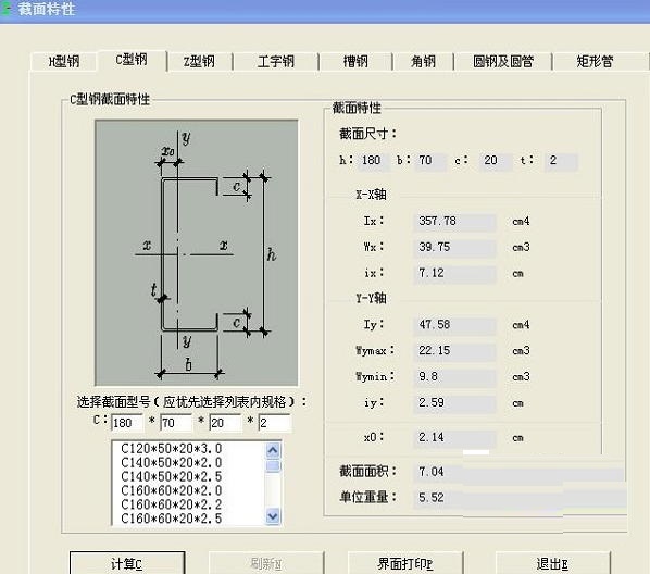 4、支持钢材截面设计以及重量计算、截面特性等功能
