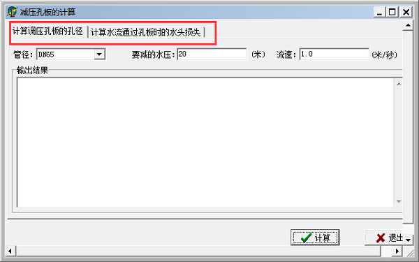 1、打开减压孔板计算软件官方版软件,选择【计算调压孔板的孔径】或者【计算水流通过孔板时的水头损失】;