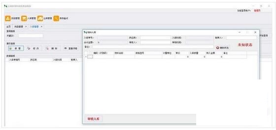 入库管理—可查询、查看历史入库信息,货品入库(可使用条码、自动新增货品档案或累加数量),可修改、删除未审核状态单据。