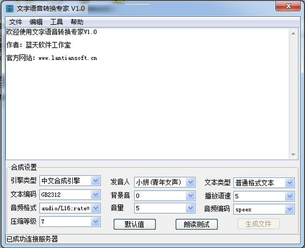 文字语音转换专家绿色版是款比较不错的文字转语音的工具,文字语音转换专家绿色版专家可以将文本文字换化成音频格式文件。软件支持四川话、粤语等、陕西话等地方特色语言,可以通过调节语速,发音人,音频格式,音量大小等相关参数,让生成的音频文件更合你意。