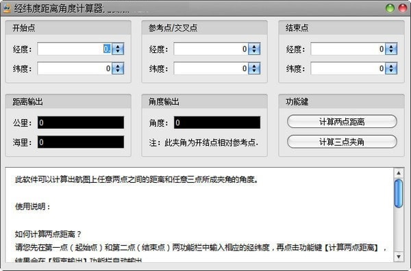 经纬度距离角度计算器最新版是一款经超级实用、易上手的经纬度计算工具,经纬度距离角度计算器最新版可以计算出航图上任意两点之间的距离和任意三点所成夹角的角度,这款软件计算过程简单,输入开始的地点以及结束地点的经纬度就可以立即算出对应的距离参数,并且也可以将角度计算出来,非常地实用!