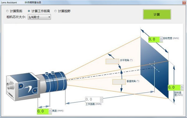 工业相机镜头选型工具绿色版是一款十分优秀的相机管理软件,工业相机镜头选型工具绿色版功能强大、易上手,有了这款软件,你可以输入一些简单的参数,即可计算相机的工作距离、相机焦距、工作视野、相机尺寸等数据,适合从事相关工作的人员使用!