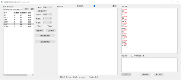 1、串口集成测试环境工具提供简单的测试功能,可以通过发送命令测试