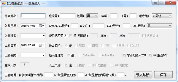ICU质控软件官方版是一款功能十分全面的医药健康软件,ICU质控软件官方版页面简洁大方,功能强劲实用,操作建设,其支持用户进行基础数据的查询、增加、删除、修改,其中微生物名称、感染诊断名称中有部分为内置名称,零基础也能操作。