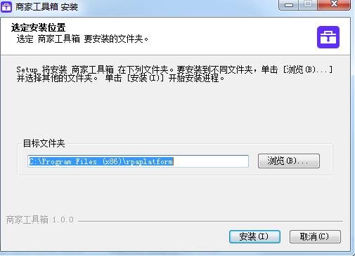 2、选定安装位置,默认的是目标文件夹是C:\Program Files\rpaplatform,可以点浏览修改,之后点击“安装”