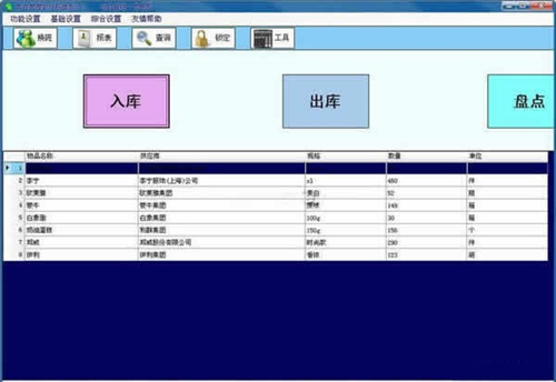 8、[入库] 即物品入库,点击从物品注册信息表中选择要入库的数据,方便快捷。