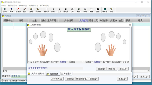 3、所登记管理的人员数量不受限制,每一位允许登记10枚指纹。
