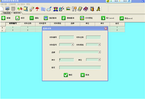 1、装修材料设置, 是工程中所用到的材料名称,型号,单价,数量等。