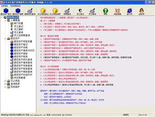 2、办公用品:办公用品登记,领用,采购,维修,报废,标签打印,员工领用查询