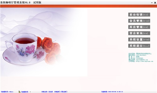 易软咖啡厅管理系统官方最新版是一款简洁友好、功能强大的咖啡厅管理软件,易软咖啡厅管理系统官方最新版集前台营业、餐台管理、菜品管理、收银管理、会员管理为一体。该软件绿色安全、无需安装即可使用,操作非常简单,为管理者提供强大的功能,从而提高咖啡厅的经营水平。