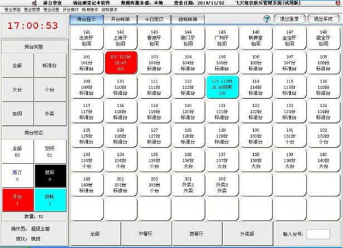 1、前台营业:开台点单结帐,可自动向吧台厨房进行分单打印