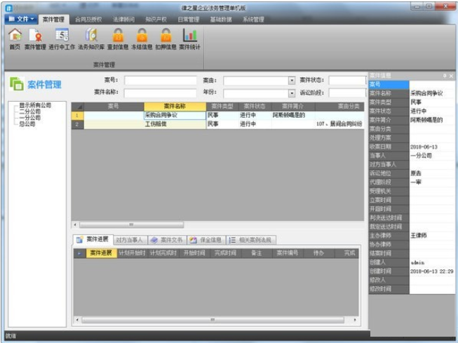 案件管理:企业在经营过程中难免会遇到仲裁或者诉讼案件,优秀的案件管理机制可以保证案件处理效果,提高成功率,并且是很好的经验积累。
