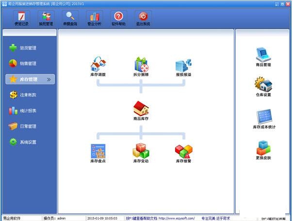 库存管理:包括库存之间商品调拔,商品的报损溢,强大的库存盘点功能,库存商品报警查询。