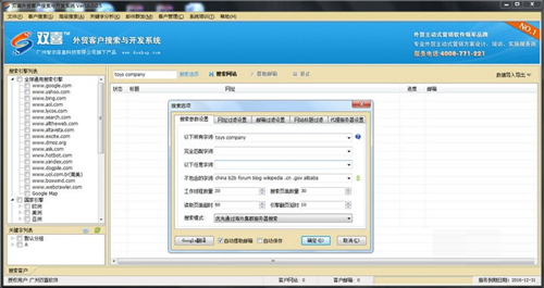 双喜软件根据产品关键字、行业关键字、目标客户产品关键字通过互联网搜索全球目标客户,支持全球各国当地语言搜索,超线程快速搜索技术。