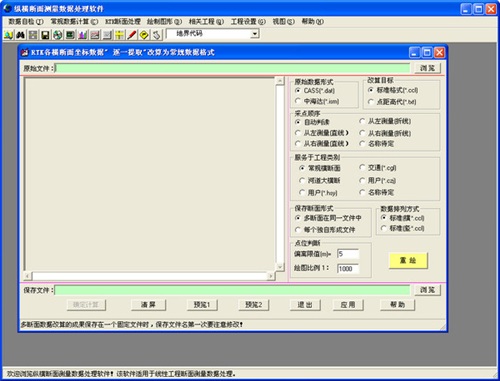 纵横断面测量数据处理软件正式版是一款用途广泛、功能强大的断面测量软件,纵横断面测量数据处理软件正式版根据传统与现代技术不同方式采集横断面数据的方式、处理特点及设计人员使用数据格式的要求,应用VB6.0语言,编写了线性工程纵横断面测量数据处理软件。