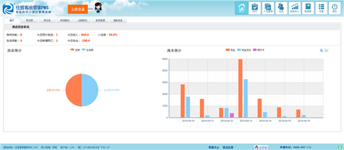1、随时查看酒店营业状况、房态统计和流水统计