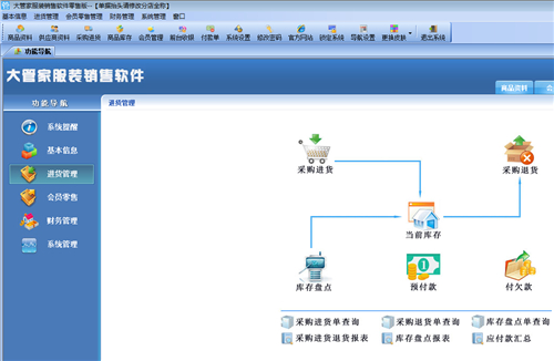 大管家服装销售软件零售版是一款界面直观清新,非常便捷易用的服装销售管理软件,大管家服装销售软件零售版可以对店铺商品的进销存能很好地管理,让你的经营帐目清清楚楚,主要从进货、零售、财务等方面系统的进行管理,具有很高的实用性!服装行业的小伙伴们可以下载使用哟!
