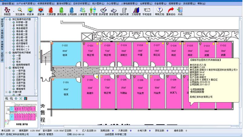 智能化:软件自动的对合同到期、物业收费到期、物业欠费、水电欠费等的进行全方位的报警提示,有效的防止错收漏收。