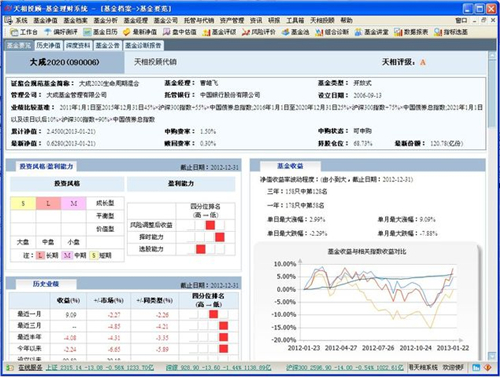 基金净值走势、基金投资能力分析、基金风格分析、基金经理简历、基金综合点评等多维度基金分析模块供客户选择,可按照客户需求定制基金理财档案。