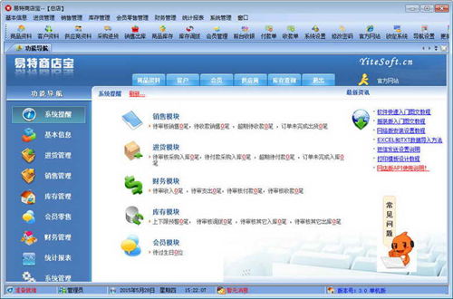 1、首先从“基本设置,菜单中各项全部建立,商品资料,分类都不是必须,客户和供应商需要建立,在进货,销售时可以自由的输入商品名称,当第一次使用