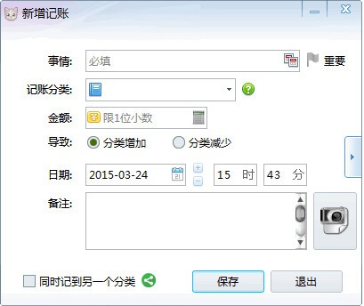 6、使用了【事情分类】在归类您的收支,便于统计、核算。而没有使用其它财务软件的会计科目、账户等晦涩的概念。