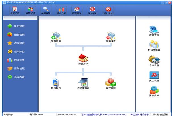 1.进货管理:进行商品采购入库,采购退货,进/退单据和当前库存查询,与供货商的往来帐务。
