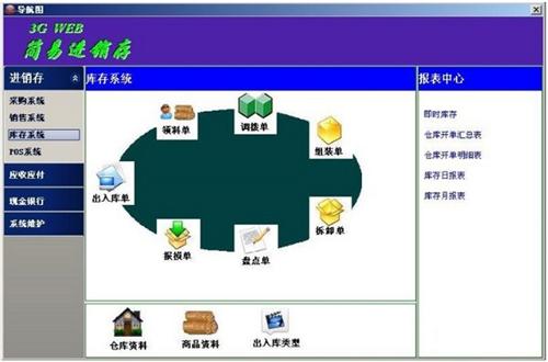 出入库单、领料单、调拨单、组装单、拆卸单、盘点单、报损单、即时库存、仓库开单汇总表、仓库开单明细表、库存日报表、库存月报表5、POS前台POS销售、POS日结、POS日结单、POS销售汇总表、POS销售明细表、POS收银汇总表、POS收银明细表、POS结算汇总表、POS结算明细表