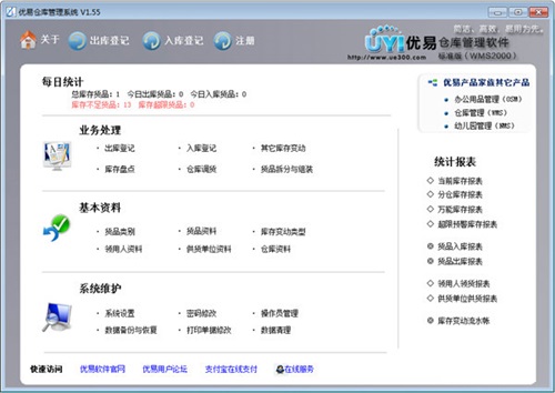 优易仓库管理系统官方版是一款界面简洁,适用范围广的仓库管理软件,优易仓库管理系统官方版在《办公用品管理软件》的基础上增加了货品多级分类特性,多仓库处理和网络版支持。它具备优异的性能,直观简洁的界面,人性化的流程和细节处理,并且内置了完善强大的动态统计分析功能。