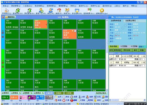 4、形象化的房态图显示,支持主次20余种房态显示,支持按楼层、按房型分类显示,完全符合操作者使用习惯