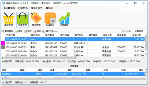 维德代购记帐软件官方版是一款功能完备、使用简单的记账软件,维德代购记帐软件官方版专为代购记账开发,能够详细记录保存客户的电话、地址、快递单号、快递费用等信息,自动结算成本,让你省时省心。