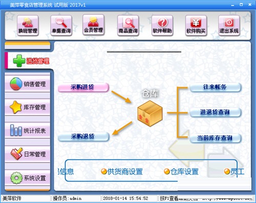 美萍零食店管理系统官方版是一款界面简洁、简单易用的零食销售管理软件。美萍零食店管理系统官方版适合被用于一些用零食店、商场等零食、糖果批发、零售场所。可以为商户提供方便的进销存、会员、财务、统计分析功能,助力店主的精确管理。