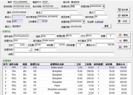4、集装箱修理:集装箱维修、估价单及维修单打印以及修箱费用统计等