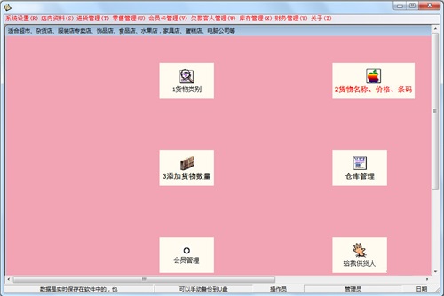 5、百威超市收银软件绿色版功能:权限管理、功能配置、备份还原