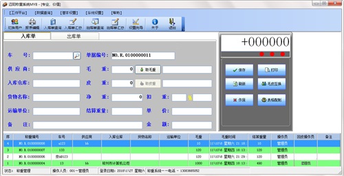 9、确定-----保存-----打印 三步操作,明显易懂,当日净重,皮重记录,毛重记录,一次打印,二次打印,重复打印均可。