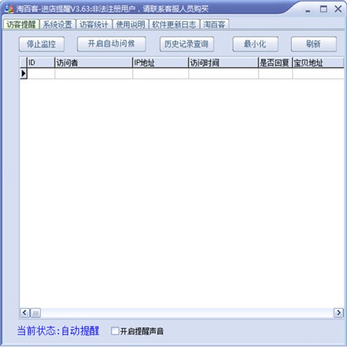 2、现在市面上的其它来客提醒软件,大多数只能监视到客人第一次来的时间,之后客人看过什么宝贝,并不会有记录,本软件会记录来客所有访问的记录,随时跟踪来客的访问轨迹。