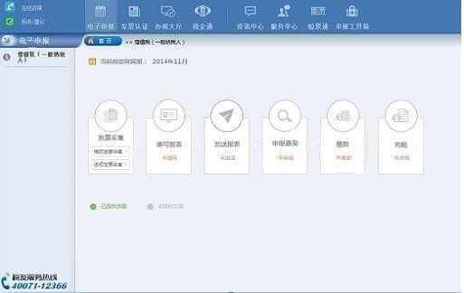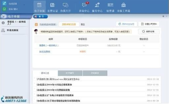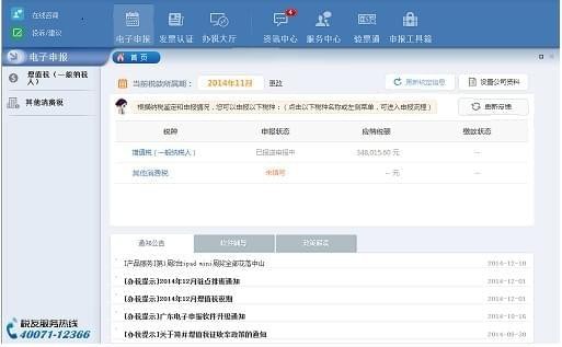 3、支持在线提交申报的税种包括:增值税(一般纳税人)、消费税、财务报表、废弃电器电子产品处理基金收入以及文化事业建设费;