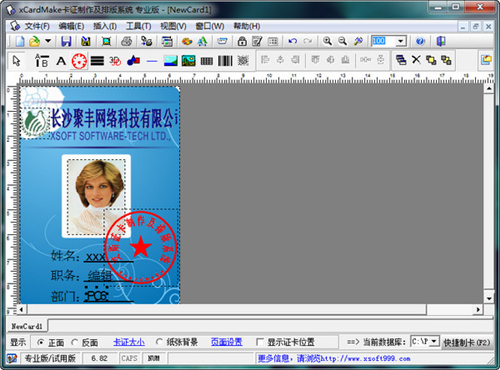 2、证卡模板设计并分类,支持模板的正、反面证卡设计及打印。