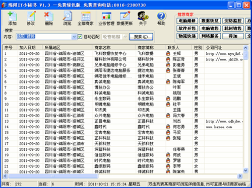 4、在推荐商家栏目内,我们优先推荐了绵阳市IT行业联盟会员单位及其他一些友好合作单位。有的新用户在第一次使用时误把推荐栏目内的商家当作所有的信息,从而抱怨信息量太少。所以又特别加上一个全部商家按钮。