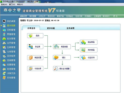 系统全面支持商业上常见的几种经营方式,包括购销、代销、联营、扣率代销、租赁等。每一种经营方式均对应专门的结算手段和报表。